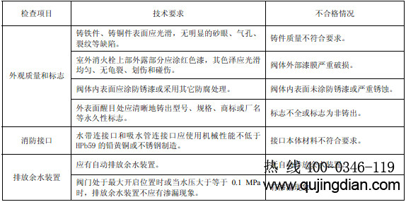 目測和手動檢查室外消火栓外觀質量和標志、消防接口的本體材料以及排放余水裝置。