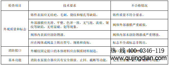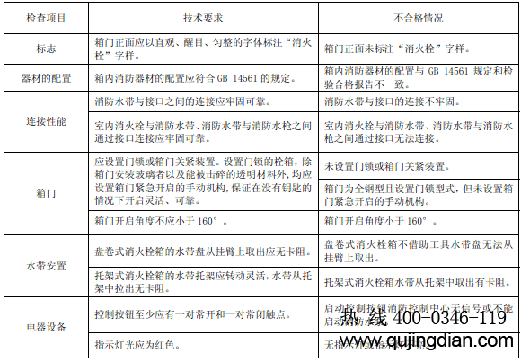 6.8.4.2.1 目測檢查消火栓箱標志、器材的配置、器材的性能、連接性能、箱門、水帶安置和電器設備。